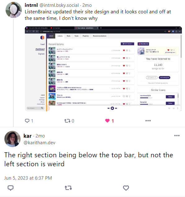 mayhem: I pushed two commits for the notifications container and brainzplayer. I'm going to take some more time to implement the feedback stuff properly in a more reusable manner