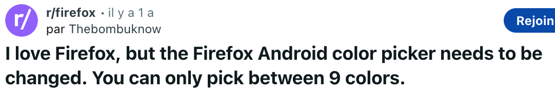 I never had used Firefox color picker on mobile before. But seeing it now that really is the most ridiculous color picker I have seen so far. lol